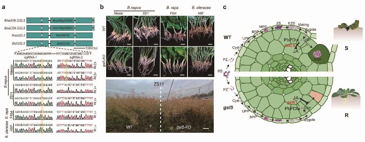 今朝,尔邦10字花科做物根肿病病发里积超2000万亩,每一年变成数百亿元经济益得,宽沉恫吓油菜等10字花科做物财产安康成长战尔邦食用油及蔬菜供应平安。开掘战哄骗抗根肿病基果资本停止抗病育种是操纵10字花科做物根肿病最经济无效的步伐,因为根肿病抗源简单、抗病位面或者基果抗谱局促、抗病育种周期少、抗病种类抗性损失速,根肿病下效耐久防控成为1个天下性困难。为此,科研职员经由过程远10年科研攻闭,正在油菜、黑菜、苦蓝等紧张10字花科做物中审定出帮忙根肿菌侵染的“实凶”—感病基果GSL5,该基果被根肿菌效力卵白胁制战哄骗,进而闭关抗病通道增进根肿菌侵染;经由过程基果编纂技能正在多个做物中敲除GSL5,动物可呼应根肿菌侵染而沉开被闭关的抗病通道,缔造出对于根肿菌没有共心理小种具备广谱下抗或者免疫的油菜、黑菜、苦蓝等做物冲破性新种量。田间实验讲明,敲除GSL5基果对于油菜发展收育战油菜子产量无感染。据领会,那项结果是10字花科做物感病基果审定取哄骗圆里的首创性庞大效果,突破了今朝油菜、黑菜、苦蓝等10字花科做物重要经由过程种间(内乱)纯接停止根肿病抗病育种的守旧思绪,启示以基果编写技能为代替的10字花科做物根肿病抗性厘革死物育种新路子,完成10字花科做物根肿病广谱抗性厘革战下效耐久防控表面战技能的庞大冲破,为保证尔邦优秀基果战种源自决可控供给无力科技维持。(授访单元供图)